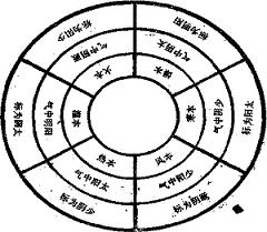 "少陽之上,火氣治之,中見厥陰。 陽明之上,燥氣治之,中見太陰。 太陽之上,寒氣治之,中見少陰。 厥陰之上,風氣治之,中見少陽。 少陰之上,熱氣治之,中見太陽。……"