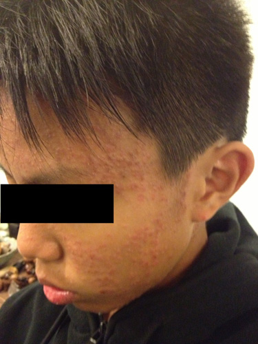 一位13歲,46.5公斤,男性中學生,數月來全身皮膚紅腫,極癢,搔抓後出膿水而